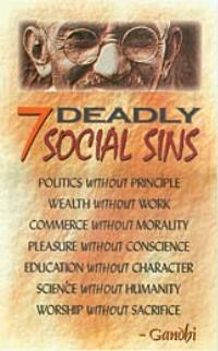 This poster includes Gandhi’s understanding of the Seven Deadly Social Sins of our time. This full colour print of his provocative message of peace and justice is suitable for framing.